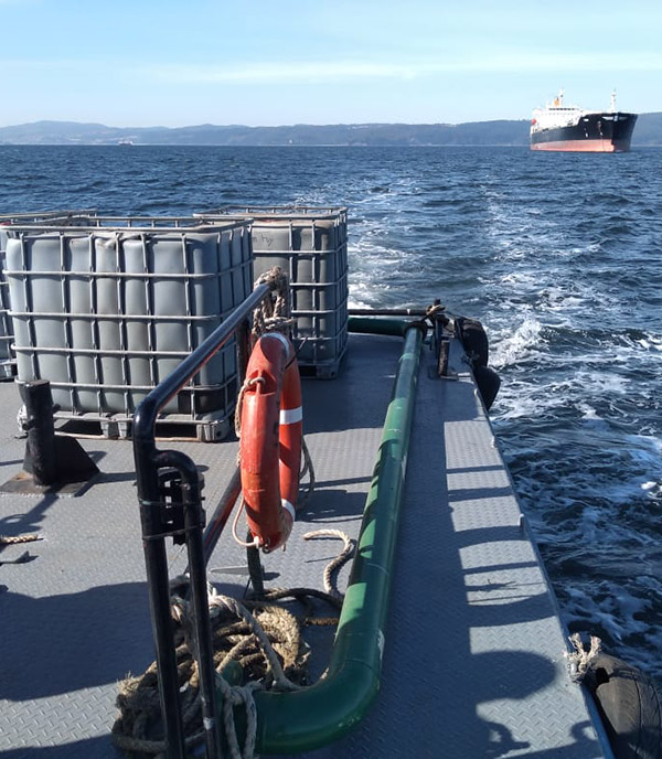 Servicio de apoyo permanente e ininterrumpido a las naves de nuestros clientes, a través de transporte marítimo de personal y pertrechos; además de la descarga de desechos y líquidos contaminados con certificado de disposición final.